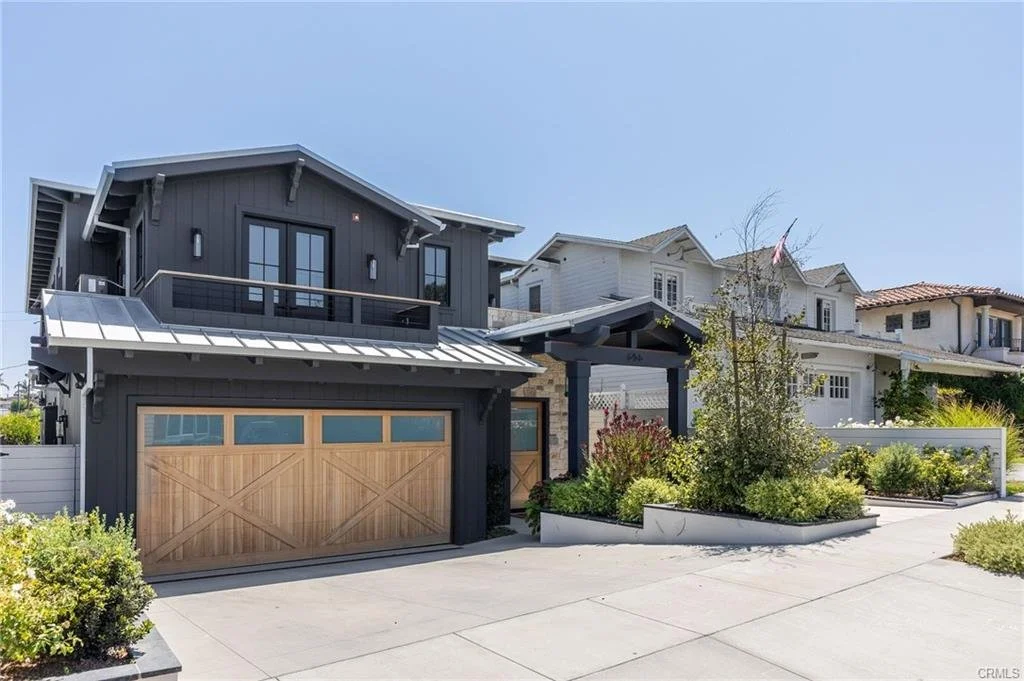 New Construction of a modern Farmhouse with unique dark exterior and unique lighting & details in Manhattan Beach, California.